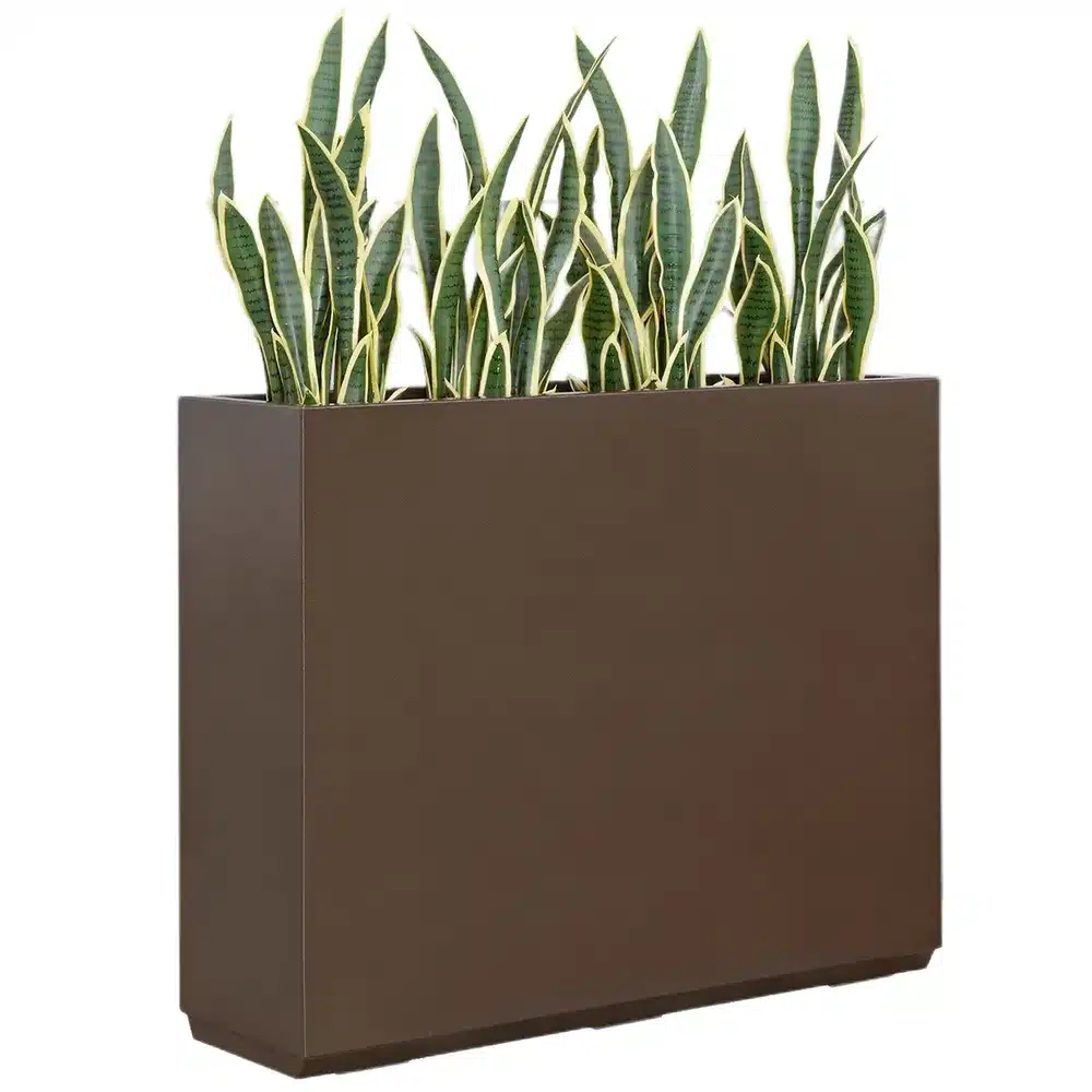 Im Mittelpunkt dieses Angebots stehen Metall-Blumenkästen mit schlanken und eleganten Rahmen. Diese Konstruktionen haben eine rechteckige Form und ragen auf schlanken Stützen über den Boden, in der Regel in mattem Schwarz. Durch diese Anhebung wirken die Pflanzen leichter und spielen eine auffälligere visuelle Rolle, insbesondere auf kleinen Balkonen.